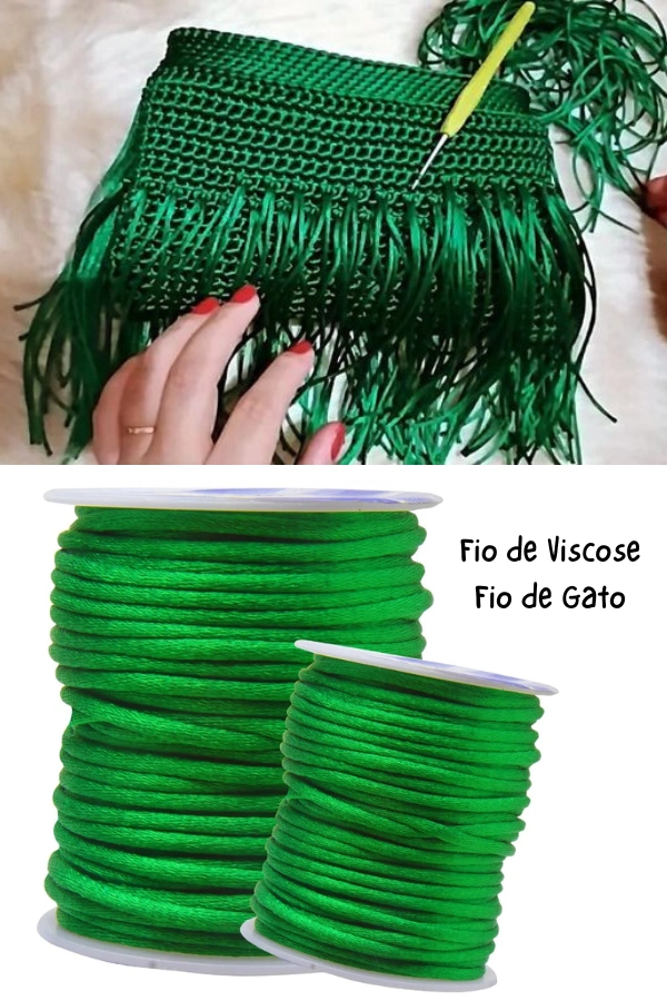 Fios como viscose, fio de gato e versões acetinadas se destacam principalmente pelo brilho elegante. Eles criam bolsas leves, delicadas e extremamente atuais, ideais para quem busca um visual moderno sem abrir mão do charme artesanal. Ou seja, são perfeitos tanto para ocasiões especiais quanto para looks urbanos mais refinados.