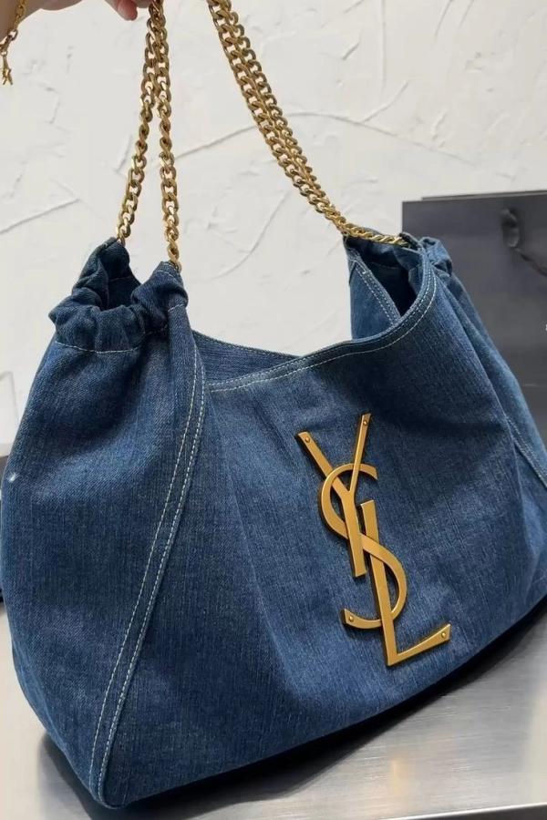 Incluir bolsos, costuras aparentes, etiquetas ou até passantes do jeans original é uma tendência forte. Principalmente porque esses detalhes trazem autenticidade às bolsas. Embora simples, esse reaproveitamento agrega charme e reforça a ideia de upcycling, transformando o que seria descartado em algo funcional e bonito.